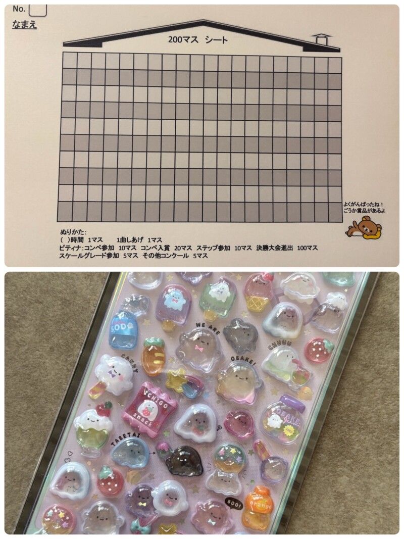 ピアノは、おウチでの練習が大切💕でもなかなか、大変です♪お母さん、ほんと毎週ご苦労様です♪そんな、大変な練習を少しでも前向きに楽しんで取り組める様、ウチの教室では、200マスシートを毎週記入して頂いています♪ 2時間1マス、一曲仕上げで1マス、コンクールで10マス 全国大会出場で100マス!! そして全て色塗りができたら、豪華賞品をプレゼント🎁 プレゼントは、色々ありますが、今、大流行のボンボンドロップシールも。だけど、これ、こんなに人気だなんて知らなかった🤣 もう手に入らないらしい😳