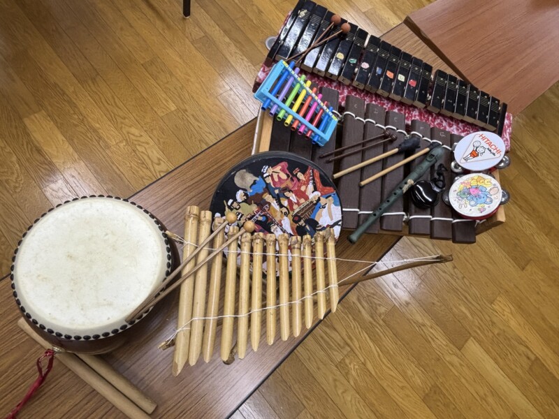 公民館で26年続いているアンサンブル講座🎶 今回、小物楽器を使ってのアンサンブルをしてみよう!!と思い立ち、皆さんにおウチの小物楽器を持って来てくださいとお声かけしました♪ まぁ面白い楽器の数々!! 木琴に、和太鼓・中央アジアのタンブリン・ギロにフラメンコカスタ・小さい鉄琴そしてリコーダー さぁどんなアンサンブルになるかな?