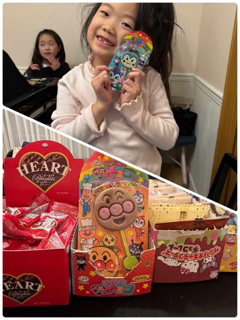 バレンタインには、チョコのプレゼント 好きなチョコを選んでもらっています。その中で コキンちゃん⁉️を見つけてニコニコ顔😃😃😃彼女は、レッスン2回目の新人ちゃん。やるなぁ👏 レアなチョコらしい🍫 ボンボンドロップシールに次ぐ、流行りのものらしい🤔